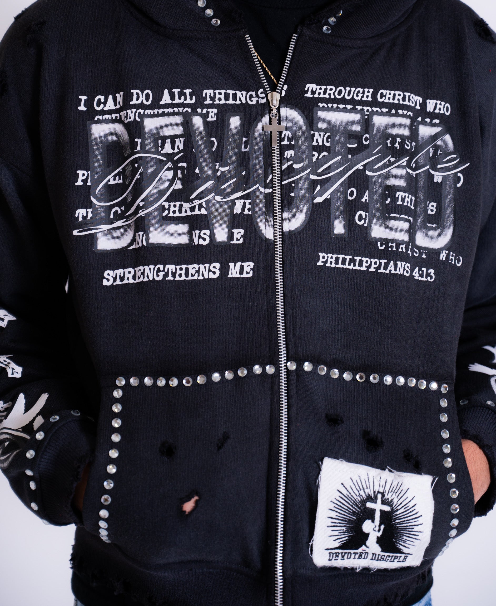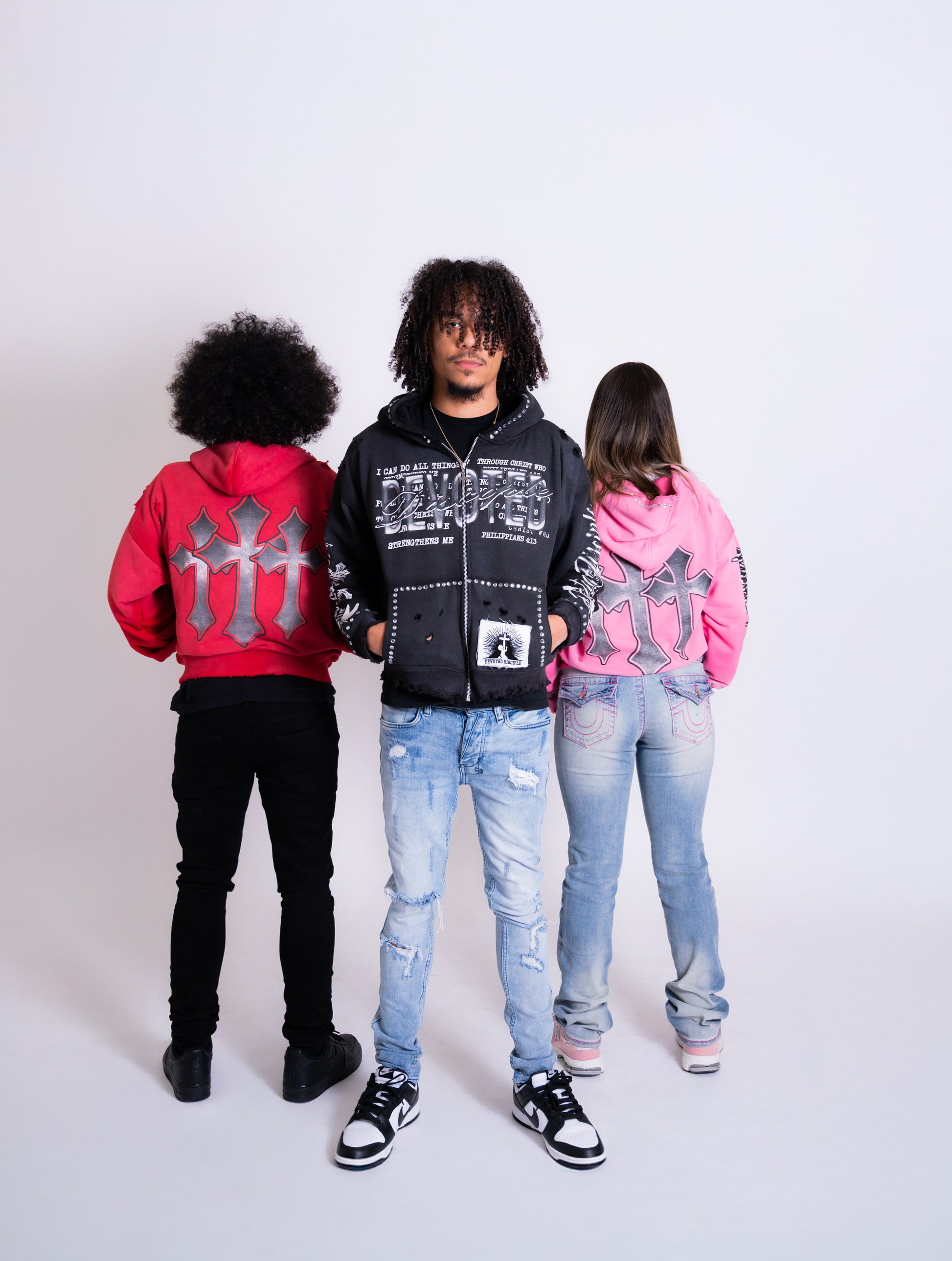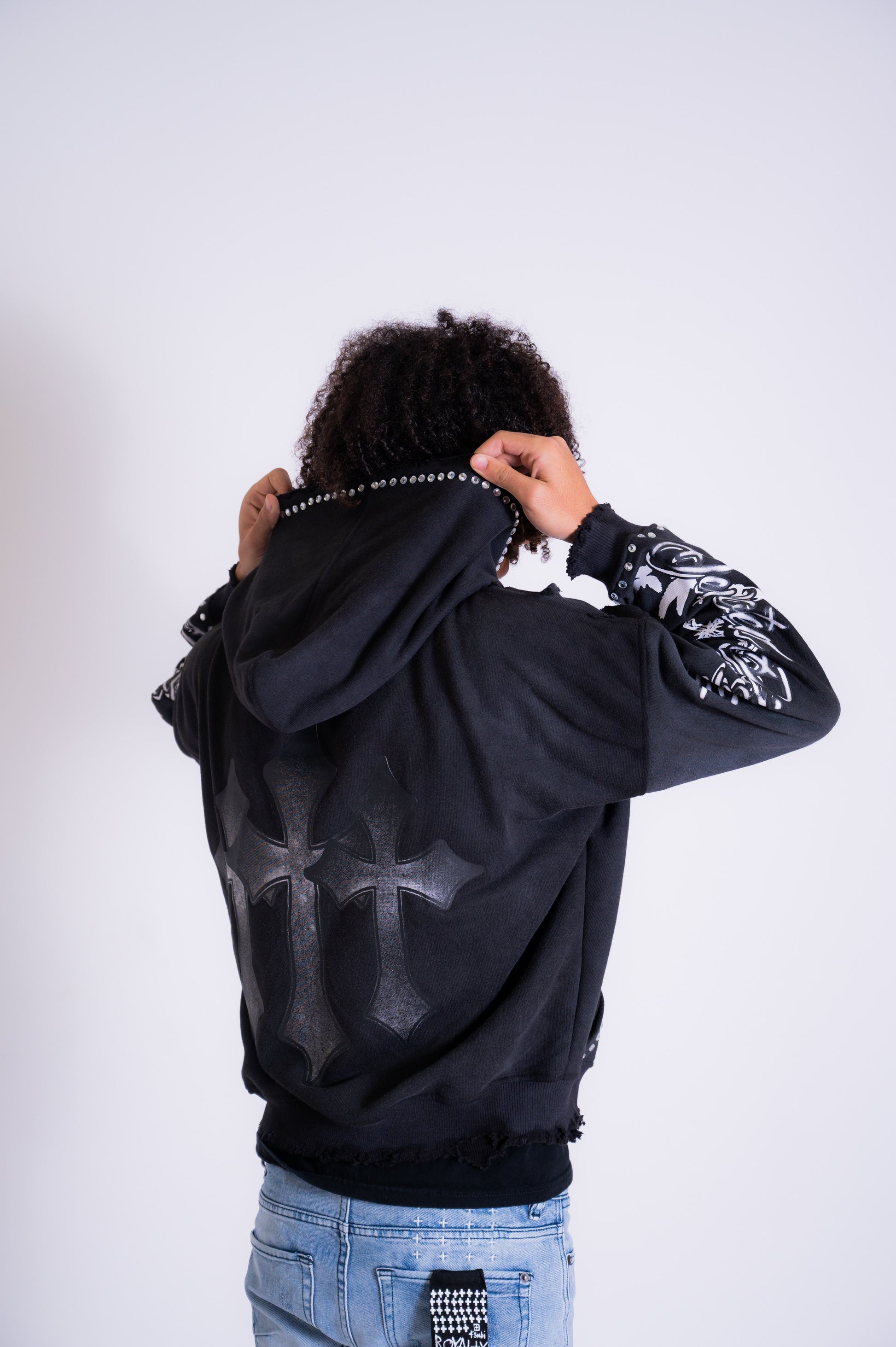 Now introducing our Cropped Hoodie, made from high-quality French terry. This hoodie features a distressed embroidered patch with gems, providing a touch of street wear style. Its light weight ensures breathability and comfort, while the cropped design adds a trendy touch.